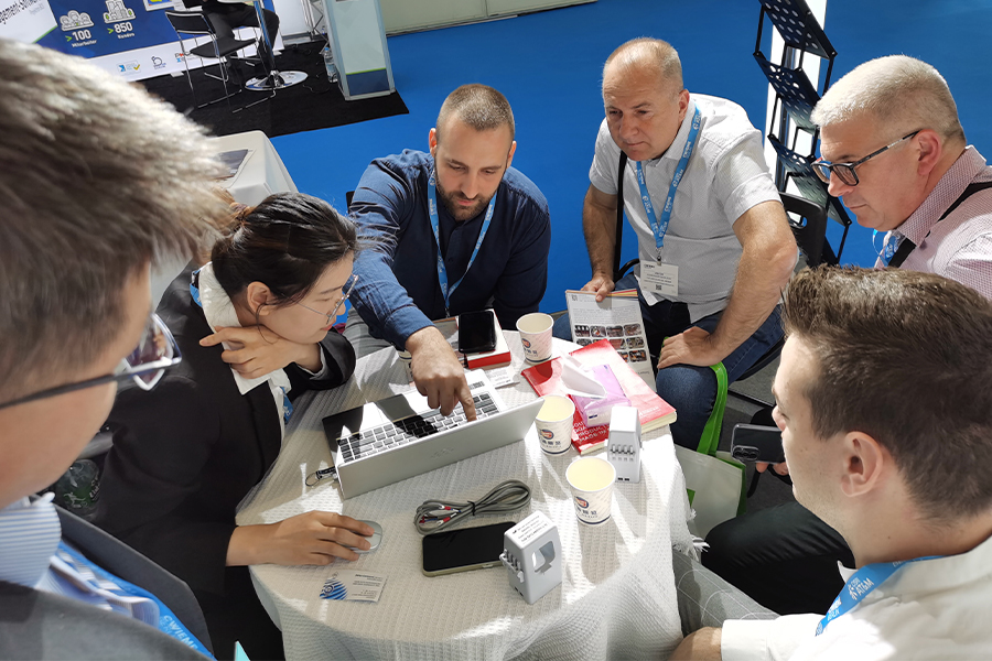 来自南欧的客户来我司摊位洽谈电流互感器等相关产品的细节,会谈后双方愉快地合影留念