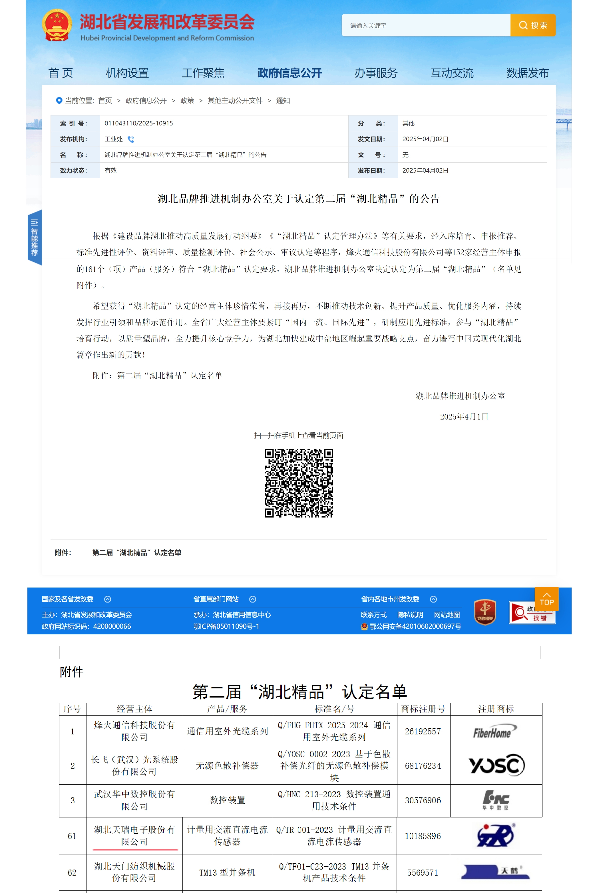 2025年4月2日,天门讯——近日,湖北省发展和改革委员会官网发布《湖北品牌推进机制办公室关于认定第二届“湖北精品”的公告》,开云体育-开云(中国)一站式服务官方网站 (以下简称“开云体育-开云(中国)一站式服务官方网站 (837601.NQ)”)自主研发的“计量用交流直流电流传感器”凭借其卓越的技术创新性、产品可靠性和市场竞争力,成功入选第二届“湖北精品”名单。这是继公司多项产品获国家级、省级荣誉后,在品牌建设和质量提升领域取得的又一重要突破。