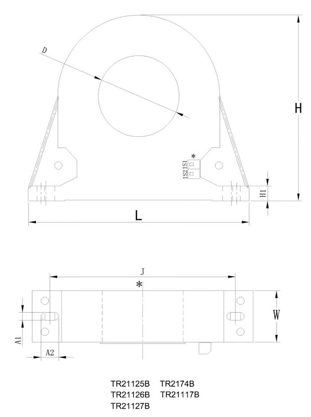 型 号 额定输入Iin 额定输出Iout 常用变比 精度等级 二次负载(Ω) 外形尺寸(mm)